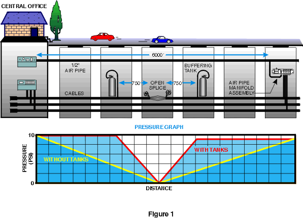 Most people don't buffer, not because they don't think it's a good idea, but because they can't afford to spend the time and money it requires. For years, there's been just two ways of buffering. The first one is to place nitrogen tanks on the cable on both sides of the splice (approximately 1,000 feet away), but this requires four additional manhole openings: two to set up the tanks and two more to remove them. This technique significantly reduces the pneumatic section where the splice is located (see Figure 1), and it effectively protects the cable while work is being performed. But, there's all that extra work involved.